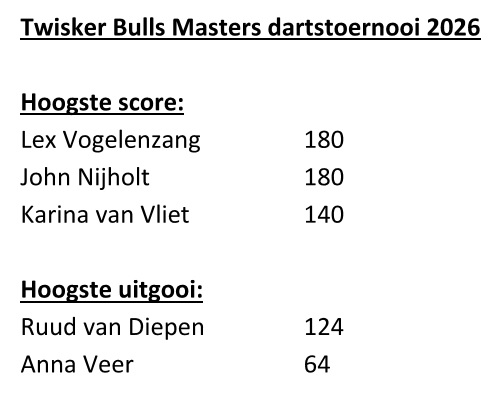 Vrijdag 30 januari begon voor de 22e keer het Twisker Bulls Masters Dartstoernooi 2026.