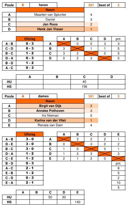 Hierbij de uitslagen van de 1ste dag voorrondes.